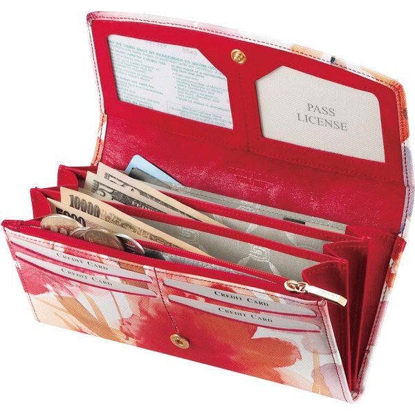 ジウディ イタリア製 レディース花柄ロングウォレット レッド 15430006