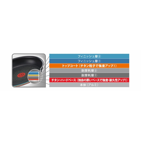 商品材料:●本体=アルミニウム(内面チタン・エクセレンスコーティング)、底部=アルミニウム+ステンレス、取っ手=フェノール樹脂