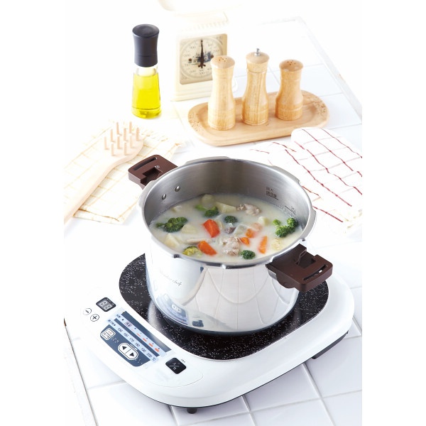 商品内容:●容量=約5.5l(深さ約15cm)●付属品=掃除ピン・取扱説明書・蒸しす・100レシピ・エコグリップガラス蓋●ガスコンロ可、100・200V電磁調理器対応
