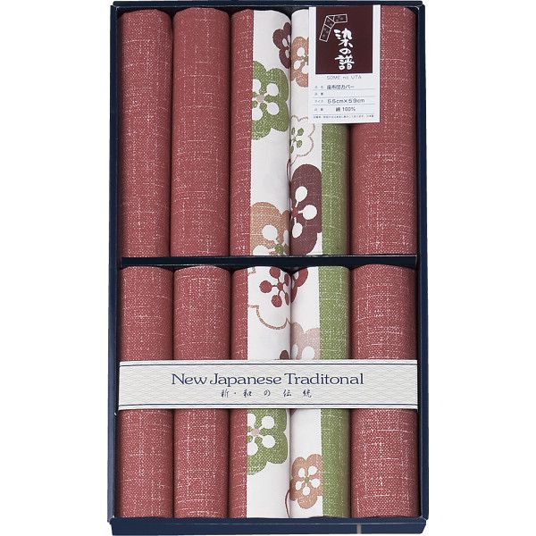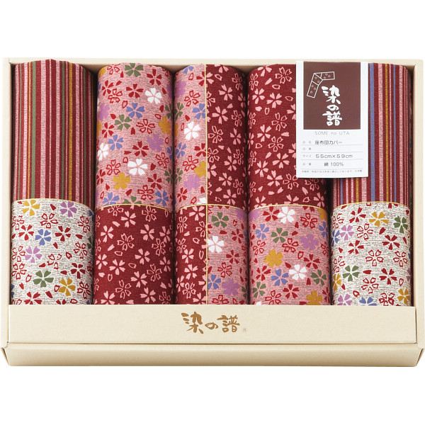 染の譜座布団カバー5枚セット(花小紋) エンジ