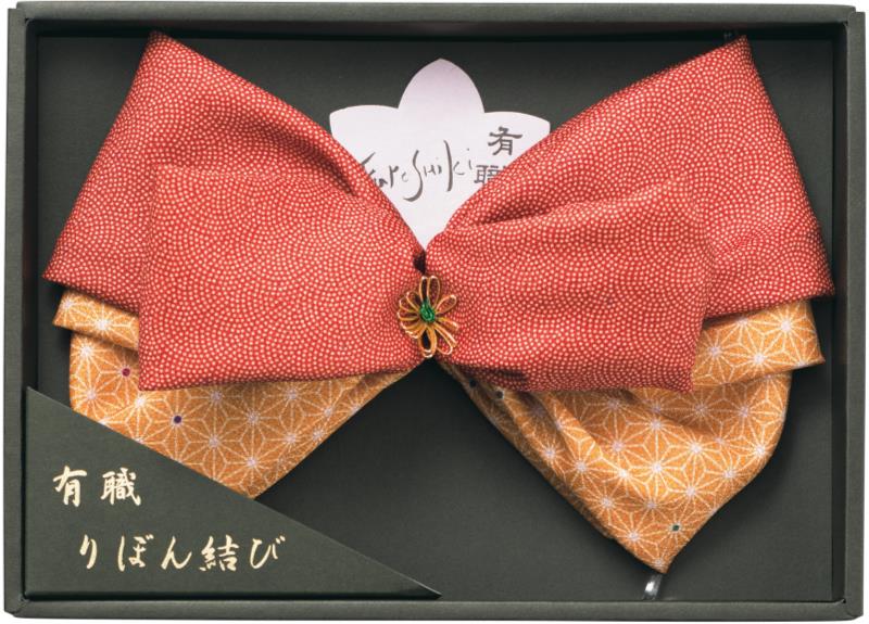 有職さざら両面りぼん結び 朱x金茶 SY3321