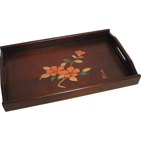 木製 蒔絵山茶花 長手盆 SY-179